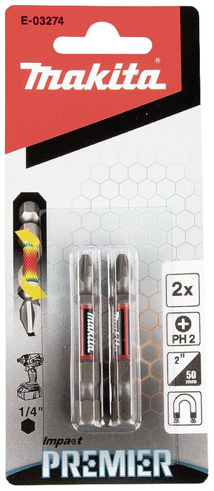 New Genuine Makita E-03274 Impact Premier Screw Bit PH2, 50mm